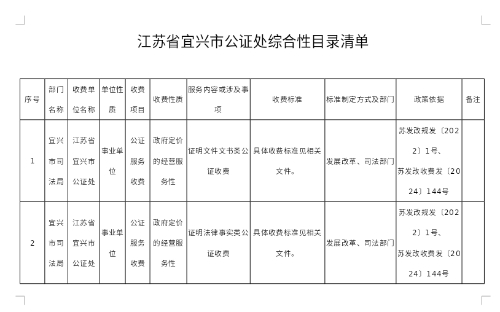 | 內(nèi)容概述 | 江蘇省公證機(jī)構(gòu)公證服務(wù)收費(fèi)標(biāo)準(zhǔn)(宜興市公證處) | |||||